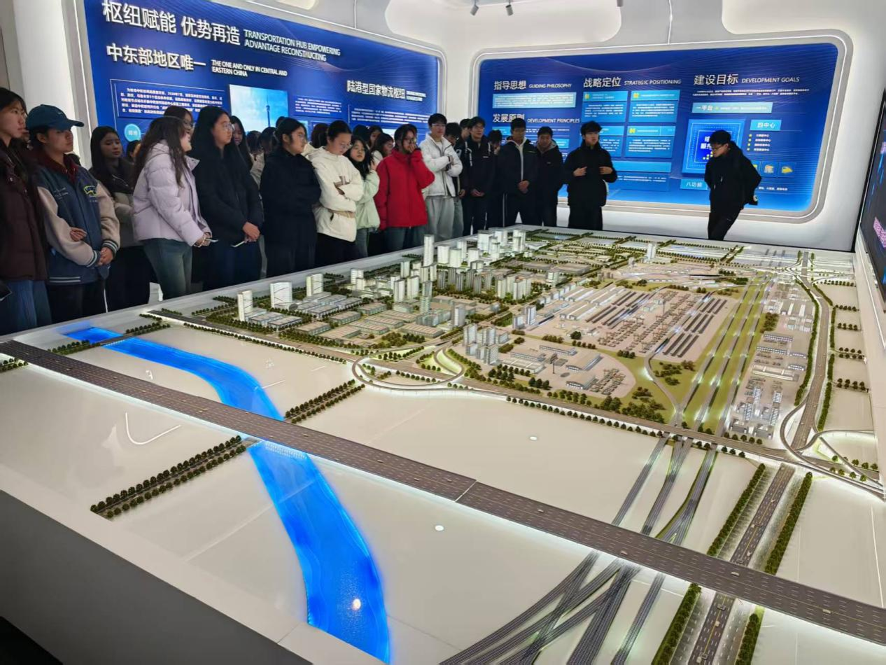 活动开始前,学院与公司围绕行程安排、参观流程及安全保障等方面进行了充分对接,确保活动安全、有序开展。本次参观活动主要包括展厅参观和虚拟体验两个环节。在展厅参观中,同学们首先学习了解了习近平总书记在考察中欧班列(郑州)的重要指示精神——“要建成连通境内外、辐射东中西的物流通道枢纽,为丝绸之路经济带建设多作贡献”。随后,通过数字化沙盘展示和实时数据监控系统,师生们系统了解了中欧班列的开行规模、覆盖网络以及智能化调度运行流程。作为全国中欧班列的重要枢纽,郑州目前已开通直达欧洲、中亚、东盟等40余个国家和地区的国际班列线路,年开行量突破3000列,成为连接亚欧大陆的重要物流大通道。依托“陆上丝绸之路”的区位与通道优势,郑州枢纽正加快构建“通道+枢纽+网络”的现代物流体系,为沿线国家和地区经贸合作持续注入强劲动能。在工作人员的引导下,师生们还分批“乘坐”公司打造的虚拟“小火车”,沉浸式体验中欧班列(郑州)的运行路线,直观感受现代信息技术与物流产业的深度融合,进一步增强了对中欧班列(郑州)发展前景的认知与信心。