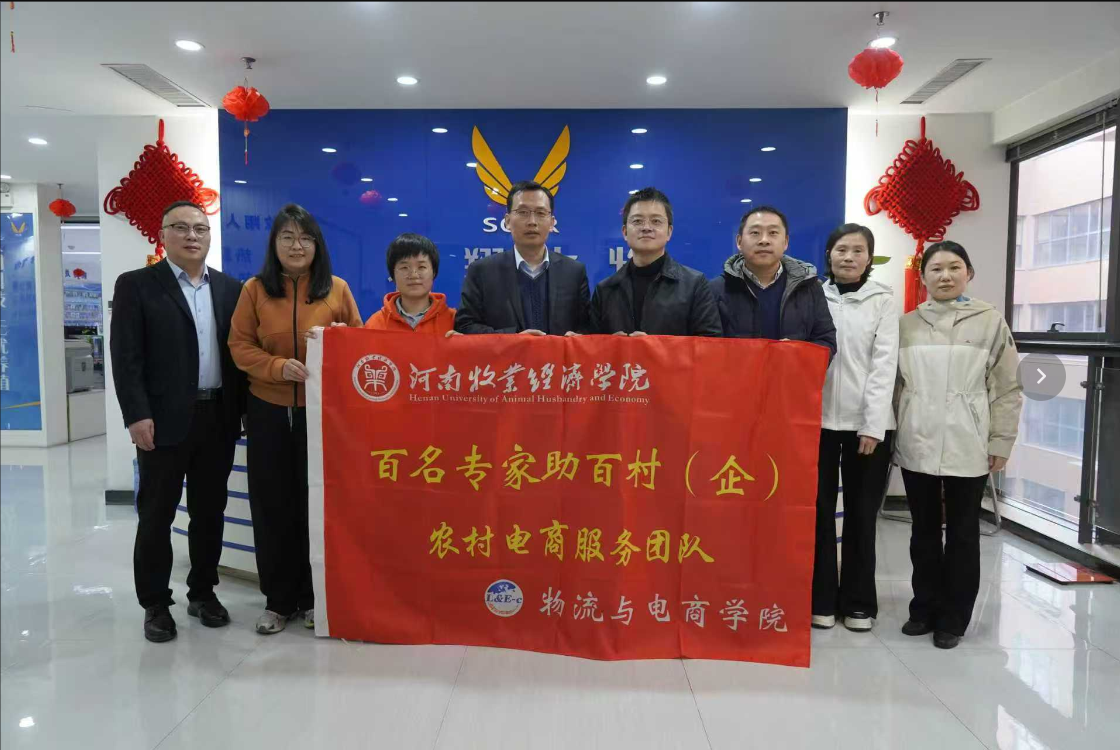 为持续推动“双百”工程,深化产学研合作,2025年12月26日上午,物流与电商学院任佳佳院长、李金峰副院长、网络营销教研室主任李娜教授、薛珂老师、温丹丹博士及电子商务专业学生代表,赴河南牧翔集团开展产学研合作深入调研。河南牧翔生物股份有限公司董事、牧翔国际董事长赵战军、牧翔生物股份人事行政部总监蒋吉勇、品牌推广部总监冯炎义、河南诸葛亮食品有限公司总经理李婕妤陪同调研并参与研讨。